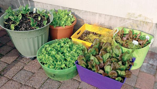 Another approach is container gardening. Container gardens do well in the cooler fall temperatures. They don’t dry out as fast and can be moved inside if necessary. Starting heat-sensitive lettuces and spinaches indoors in the AC with “Salad Bowl” containers is a great way to get a head start. Other edible containers can be part of your landscaping with mixes of colorful kales, mustards, or lettuces paired with edible flowers like pansies and violas. Spikes of scallions or chives can be the thriller part of your “thriller, spiller and filler” combinations.